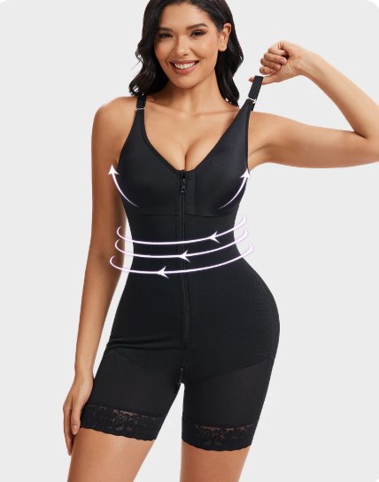 Designed with a built-in bra and high-compression tummy panel, this full-body shaper defines your silhouette from bust to thigh. Adjustable non-slip straps and a zippered crotch make it practical for daily wear, while its sleek shape flatters under any outfit—from dresses to suits.